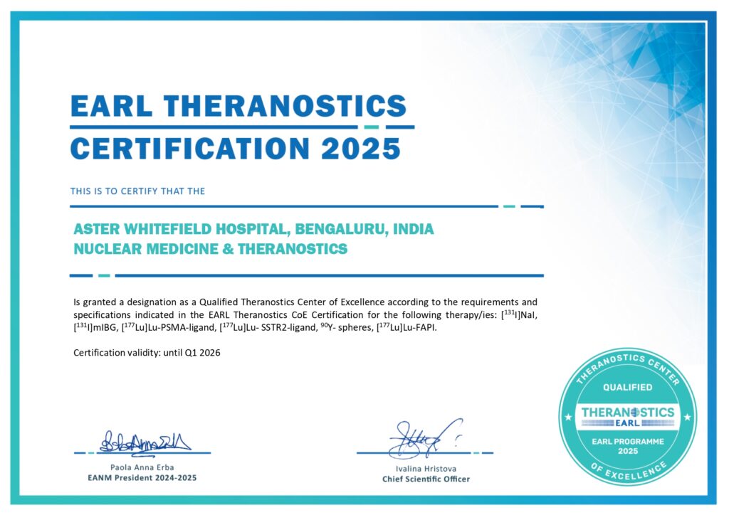 He has undergone specialized training in Radionuclide Molecular Theranostics and gained extensive experience working with innovative radioactive molecules for both diagnostic and therapeutic applications. Prior to joining the Aster Group in 2023, he worked at leading hospitals and further enhanced his expertise through advanced Theranostics training at the Peter MacCallum Cancer Foundation, Australia.